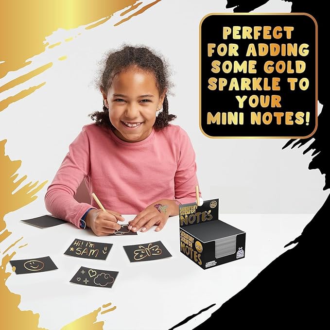 - Magic Doodle Paper - Black scratch art note cards with fun metallic gold layer hidden under the black matte coating; each order comes with one box of 150 sheets of notecard scratch paper and 2 stylus pens for messages.