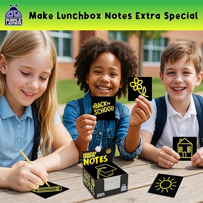 - Cute desktop design! This set of 150 scratch paper notes is as cute as it is fun, with shiny and eye-catching notecards and a rainbow design desktop dispenser that has a convenient holder for the stylus scratchers.