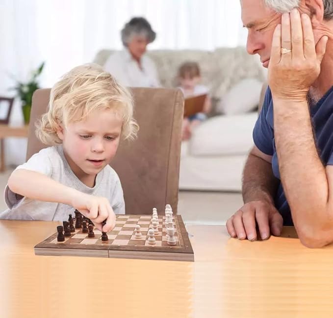 Chess Set,Folding Storage Wooden Chess Board Sets,17" Wooden Chess,3 in 1 Chess Board Game for Adults and Kids (Chess,Backgammon,Checkers)