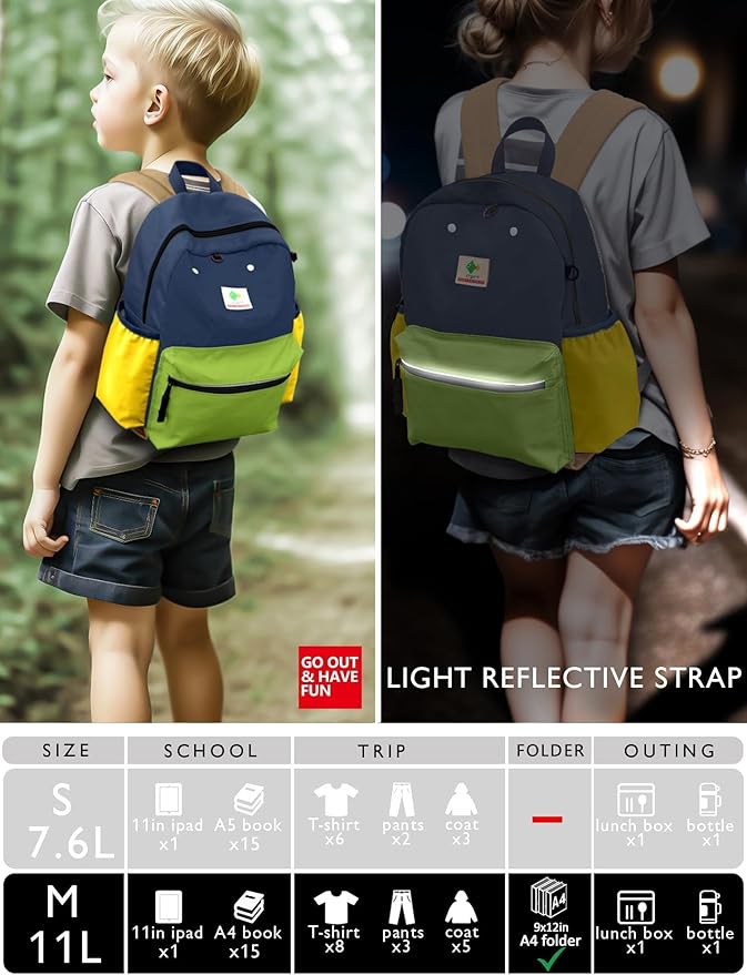 - Hidden Reflective Strip and Convenient D-rings: Our backpacks feature a hidden, slim reflective strip sewn onto the front pocket zipper for safety at night. They also have two D-rings sewn onto the front, which can be used to attach various items such as a child's leash or pencil case.