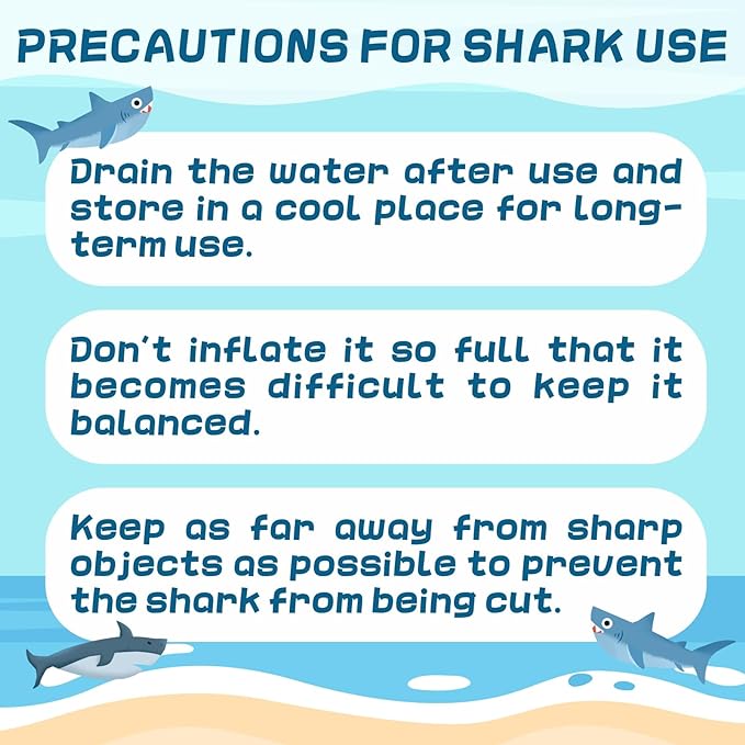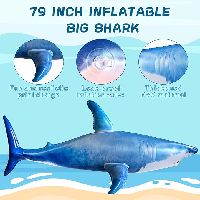 - Crafted with Auality and Care: The inflatable shark is made of waterproof PVC material, which features good air tightness and surface smoothness; It is reusable and reliable, easy to fold and store, not easy to deform under normal conditions.