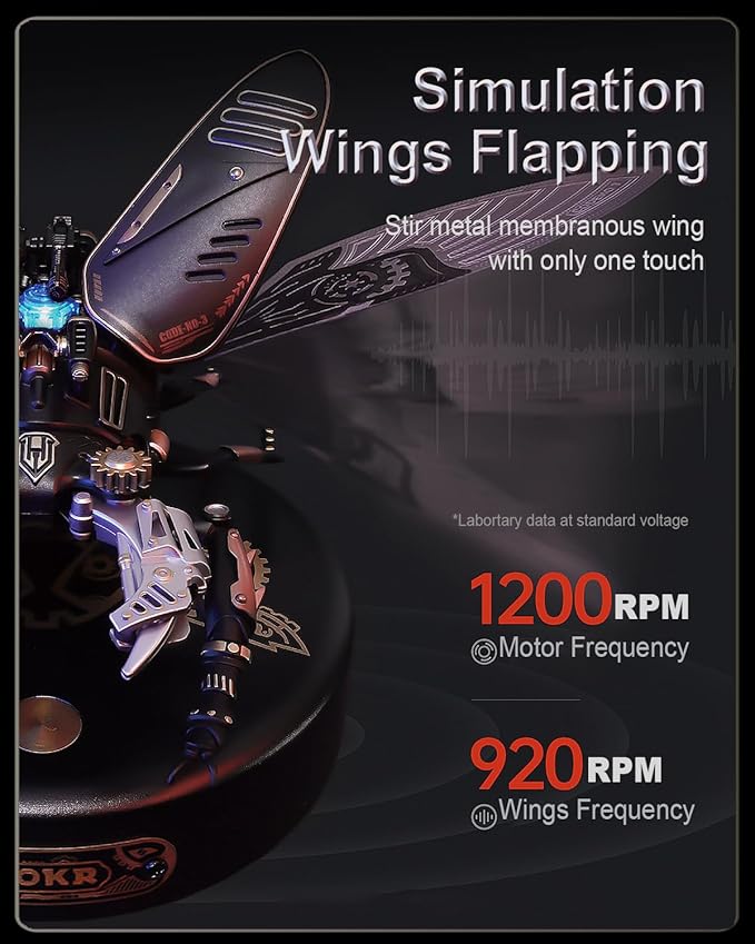 - 【Interactive Touch Switch Display】 The 3d metal insect stands on a stable base with a brass touch switch. When turned on, it flaps its wings and engine moves up and down, creating a mesmerizing display. The motion lasts for 3 minutes with one touch, and it will automatically stop to avoid power consumption.