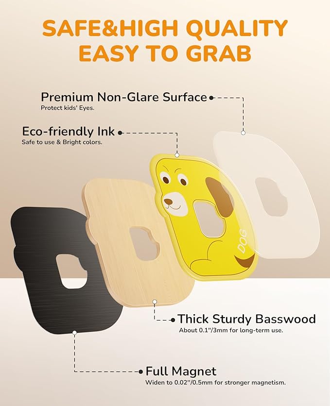- Design for Kids:Bring kids a better game experience, we design the letter size of 2.36''*2.5''*0.14'' with cute animal design, number size of 2.36''*2.16"*0.14", larger size and suitable thickness. The fridge magnets for toddlers use basswood interlayer, which is more convenient to grasp for little hands. The full magnet back is not easy to fall off, all for long-term use