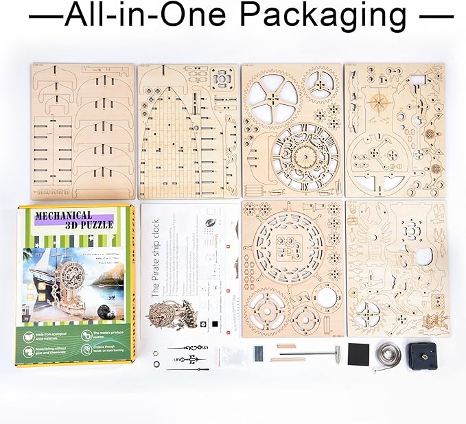 - MECHANICAL CLOCK PUZZLE:The Pirate Ship Clock Puzzle makes a stunning centerpiece, blending nautical adventure with timeless craftsmanship. Display it on a bookshelf, desk, or mantel and let its intricate details and moving gears spark conversation and capture attention.