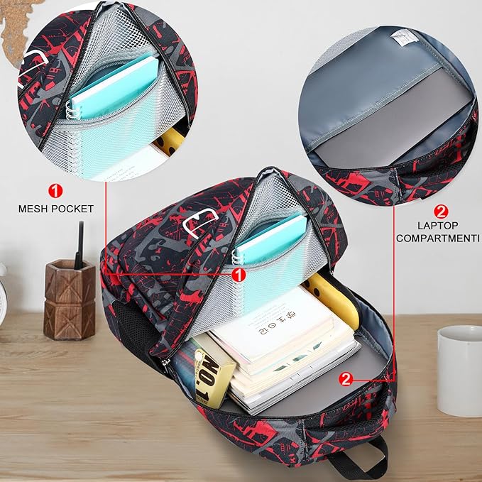 LEDAOU School Backpack Teen Boys Kids Bookbag School Bag for Middle Waterproof Casual Daypacks Travel Back Pack(Graffiti Red)