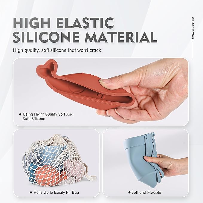 - Travel Friendly: Packing this beach toys set is a breeze. Made from soft and flexible silicone, you can stuff everything in the bucket and into your suitcase without having to worry about it cracking or taking up too much space