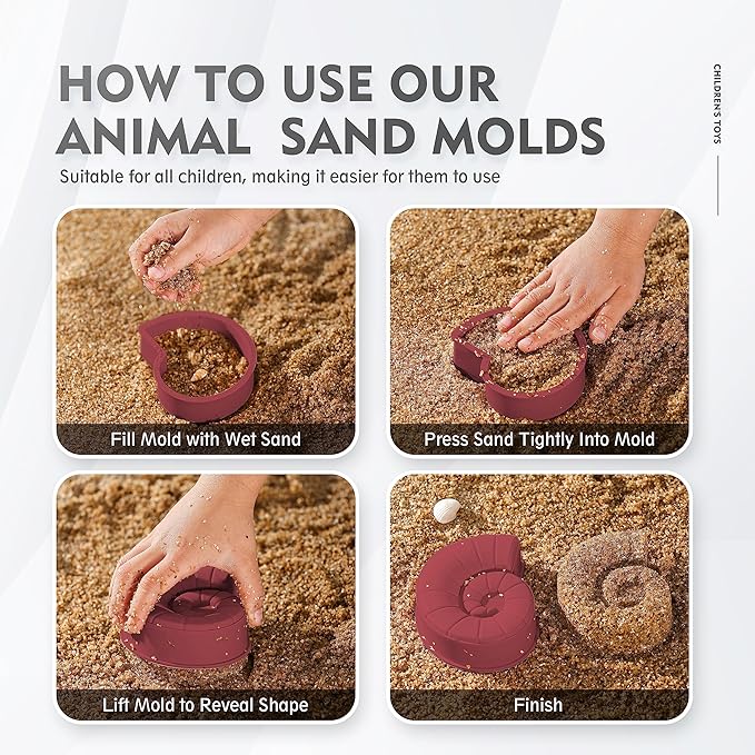- Versatile: This set contains all the beach essentials for keeping your children engaged for hours. Just sit back and relax as your children use the silicone molds to make fun shapes in the sand. Easy to clean, you can also use them in the bath
