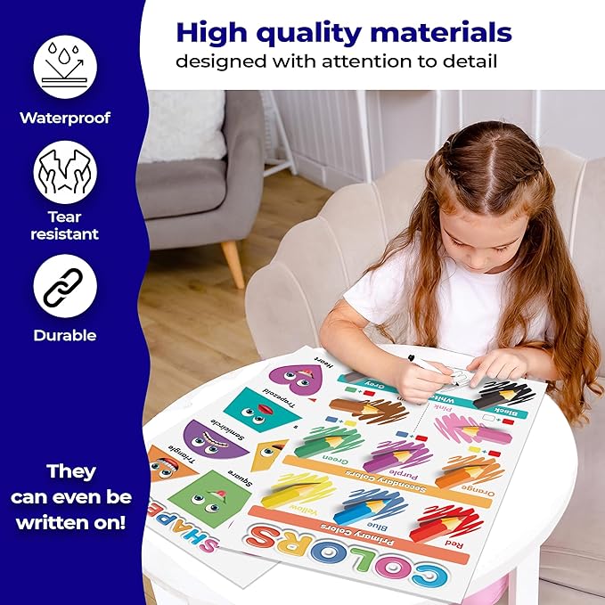 - Each of the kids educational posters is 11 x 17 inches and laminated on both sides. Set Includes 16 kindergarten learning posters including Laminated ABC Poster, Days of the Week, Months of the Year and many more learning charts for toddlers 2-4 years.