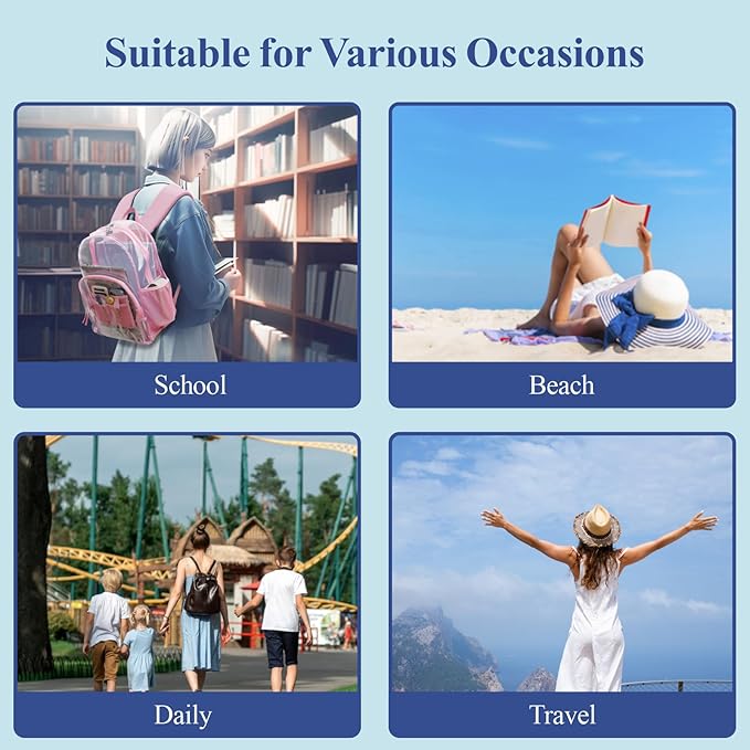 - Versatile and Convenient: This stylish clear plastic backpack is perfect for men, women, and boys girls students in any setting – whether it's school, work, or travel. With ample space for all your essentials, it eliminates the need for multiple bags, providing great convenience. It's the perfect gift for your family and friends, offering both style and functionality!