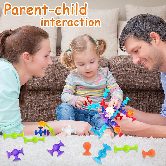 - ๐ใ Suction Cup Toys for Baby ใ48PCS building stacking sucker toy set is great enlightenment toy for kids. It can be transformed into various shapes such as numbers, geometric figures & objects, to help children learn numbers and recognize shapes. NOT FOR TEETHING!!