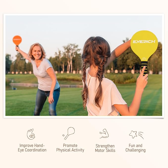 EVERICH TOY Paddle Ball Set, Badminton Set 4 Rackets, Great Gifts Easter Basket Stuffers for Kids Teens Adults and Family, Fun for Beach, Yard, and Lawn Play All Year Round