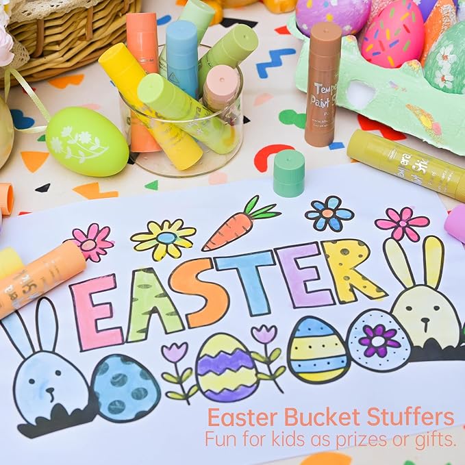 - EFFORTLESS DRAWING & SMOOTH WRITING: Uncap, twist and then start painting. No water or brush needed. Each tempera paint stick goes smoothly on most surfaces, makes it easy for little hands to use by their own and create whatever they want.