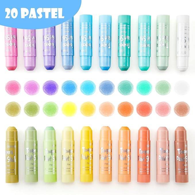 Shuttle Art Tempera Paint Sticks, 20 Pastel Colors, Solid Tempera Paint for Kids, Super Quick Drying, Works Great on Paper Wood Glass Ceramic Canvas