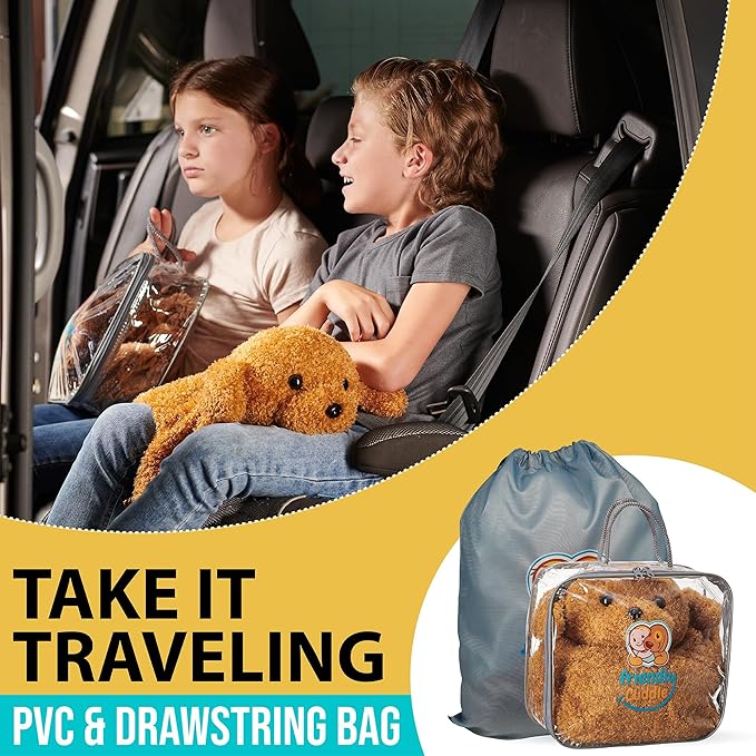 - Huggable Comfort – Ground on the go with your weighted stuffed animals. Give kids a reassuring squeeze they can take in your 2 included travel bags with their 5 lb. weighted plush pal.