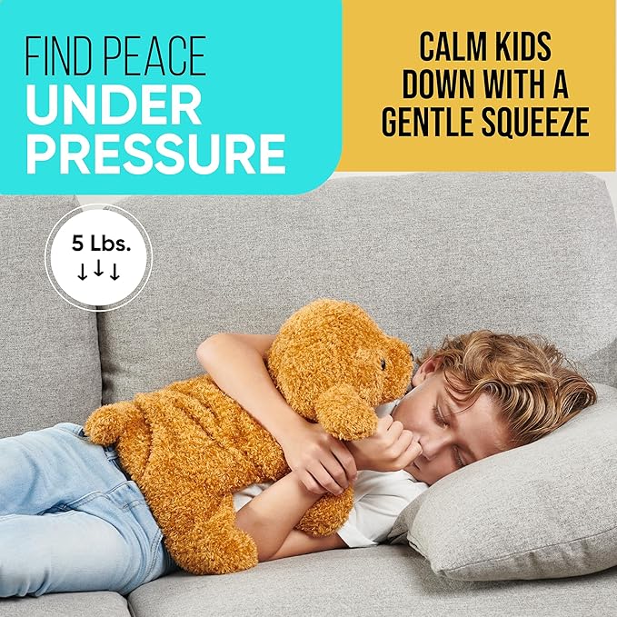 FRIENDLY CUDDLE Weighted Lap Blanket for Kids & Adults – Teddy Weighted Blanket – ASD, Sensory Processing Weighted Stuffed Animals Dog Toy – Microwavable Weighted Lap Pad for Kids, 5 Lbs