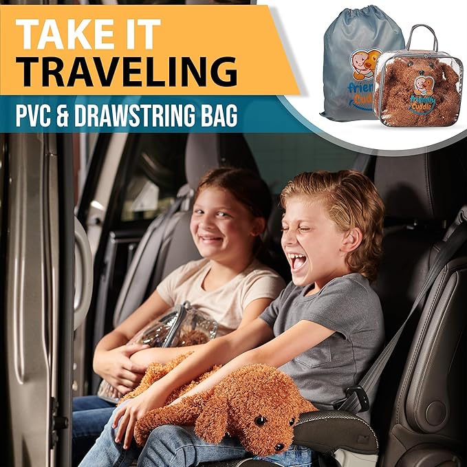 - Huggable Comfort – Ground on the go with your weighted stuffed animals. Give kids a reassuring squeeze they can take in your 2 included travel bags with their 5 lb. weighted plush pal.