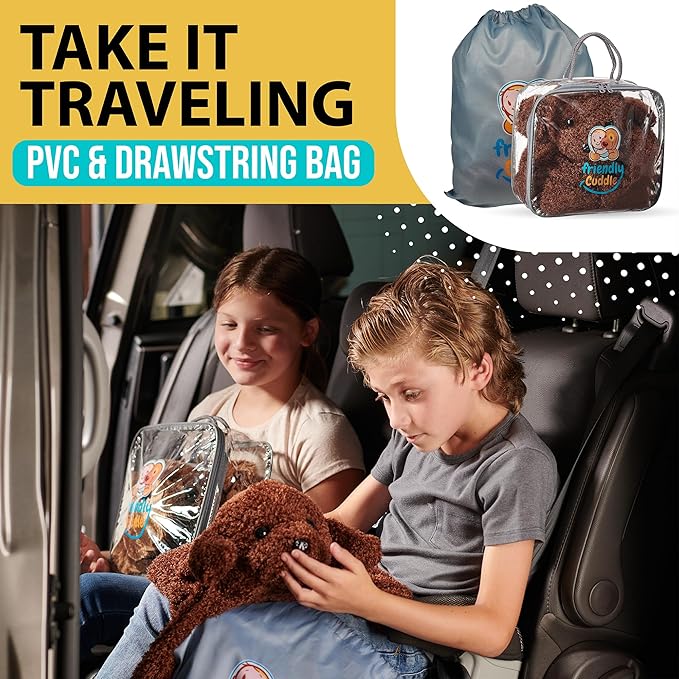 - Huggable Comfort – Ground on the go with your weighted stuffed animals. Give kids a reassuring squeeze they can take in your 2 included travel bags with their 5 lb. weighted plush pal.