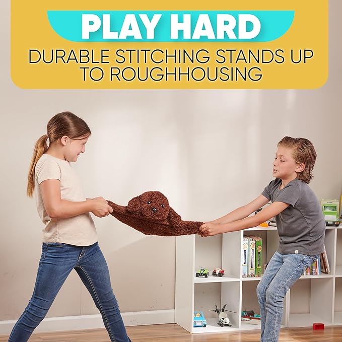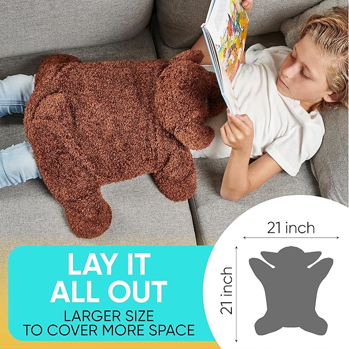 - Rough & Tumble Ready – Stretch and spill on your soft weighted blanket for kids without ripping and ruining it. Your dog relief toy has strong stitching and a machine-washable outer layer.