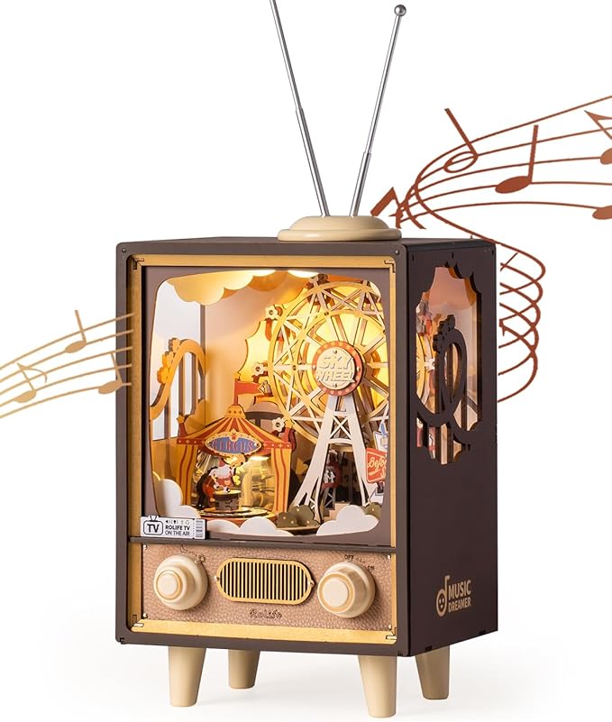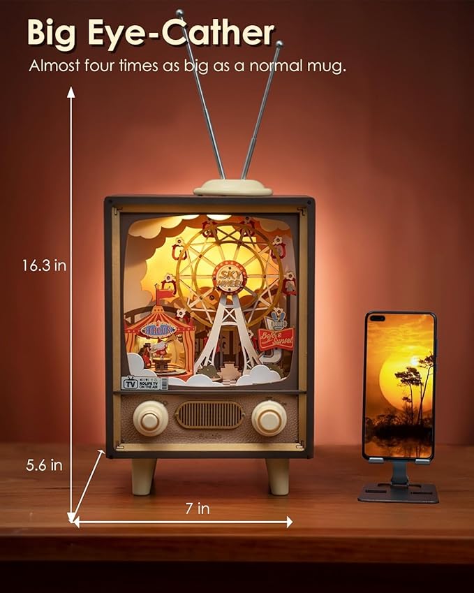 Rolife 3D Wooden Puzzles for Adults DIY Book Nook Kit 16" Ferris Wheel Music Box Model Building Set with LED Crafts for Adults Gifts for Girls Boys (Sunset Carnival)