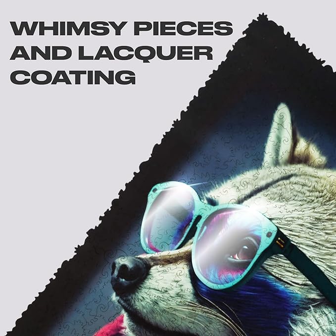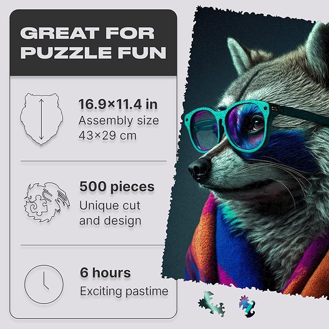 UNIDRAGON Original Wooden Jigsaw Puzzles - Pop Art Glow Up Collection - Bandit - Raccoon Puzzle 500 Pieces, Beautiful Gift Package, Wooden Puzzle for Adults