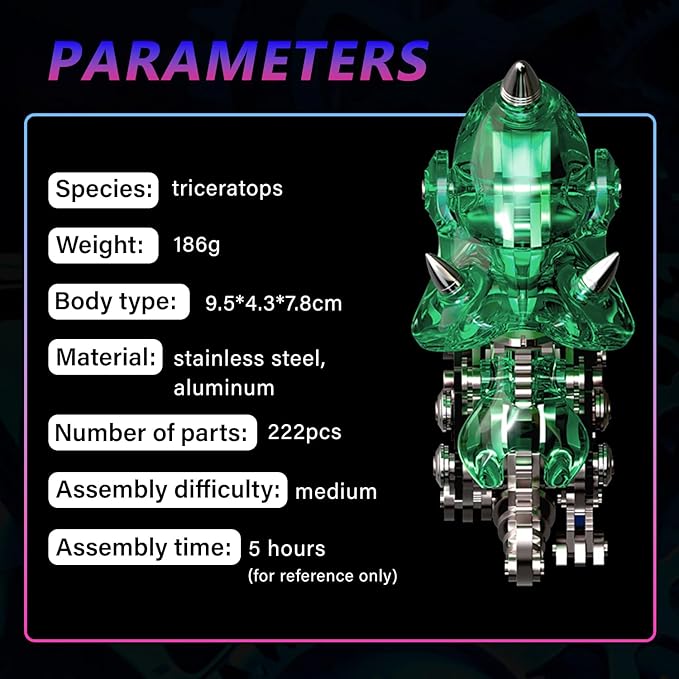 - 【Product Quality】:3d metal puzzle triceratops green diy model kit adopt high-precision laser cutting technology and the high quality Stainless Steel material to produce,The 3D metal puzzle kits is super lightweight and feels fairly delicate,sturdier than your expectation.