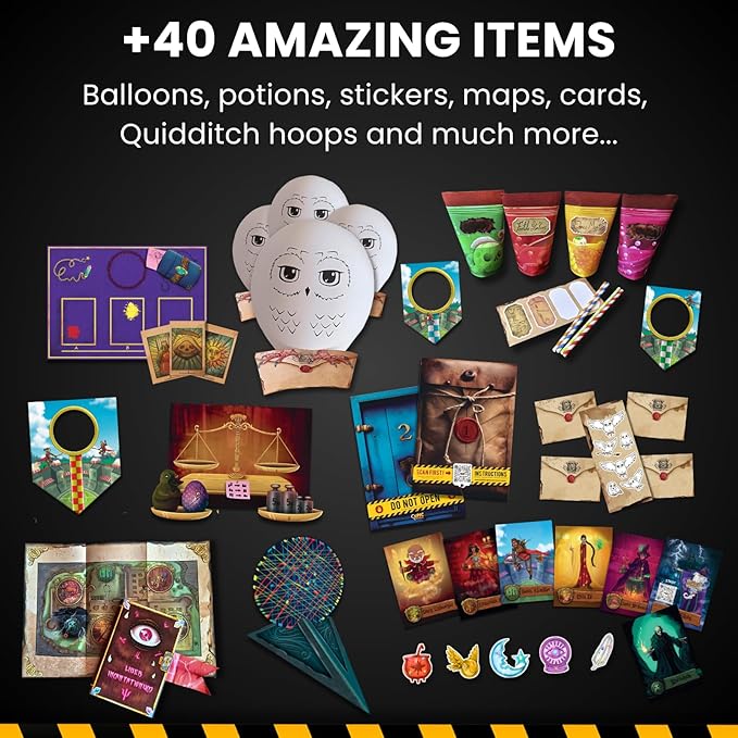 - ๐ฅณ EPIC PARTY GAME - Choose the Escape Room Party Kit and throw a magical-themed bash with Harry Potter inspired decorations. The kit includes party favors like owl stickers, paper magic wands, and Harry Potter balloons. Surprise your kid with a birthday party they'll remember for a lifetime!