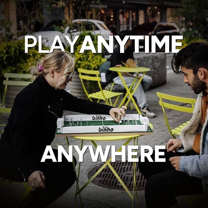 Binho Board Classic Board Game Green Turf - 2-Player Fast-Paced Finger Flicker Pinball Family Board Games - Portable Tabletop Sports Game Set for Any Occasion