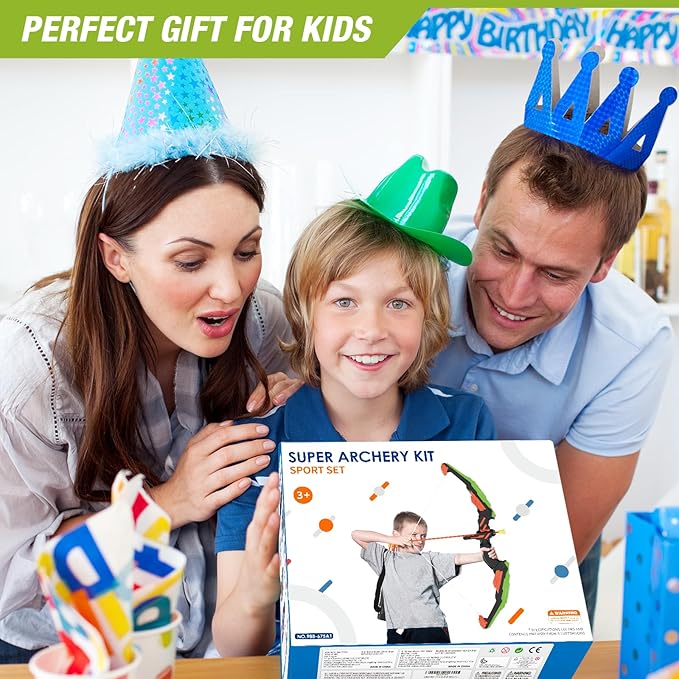 - [Educational Sports Toys] -Kids archery set not only develops kids hand-eye coordination and motor skills, but also enhances kids physical fitness and keeps them away from video games. Parents and children play shooting games together to enhance parent-child communication.