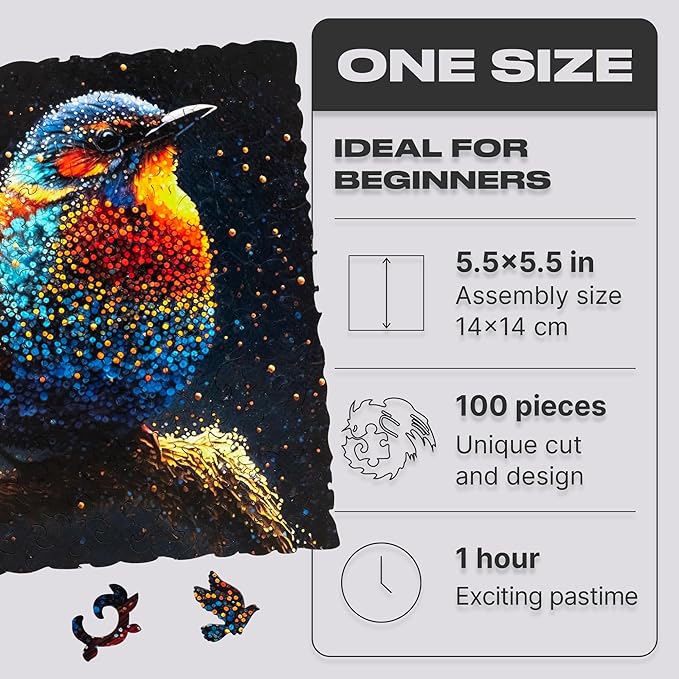 UNIDRAGON Original Wooden Puzzles for Adults - Pop Art Birdy 100 Pieces 5.5" x 5.5" (14 x 14 cm), Beautiful Gift Box, Unique Shape Best Gift for Adults and Children