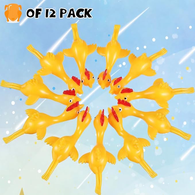 12pk Slingshot Chicken Finger Toys Party Favors for Kids 4-8-12 Boys Teens, Funny Mini Flying Rubber Chickens Bulk Classroom Prizes for Kids Goodie Bags Pinata Fillers Birthday Gifts Stocking Stuffers
