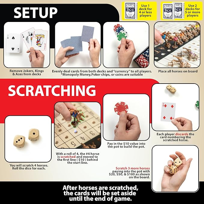 - Fun & Easy to Learn - This classic family game is designed for easy play and instant fun for both kids and adults. Players simply roll the dice to determine the advancing horse, with each equine competitor having an equal chance at victory. Experience heightened excitement that keeps everyone enthralled until the very end.