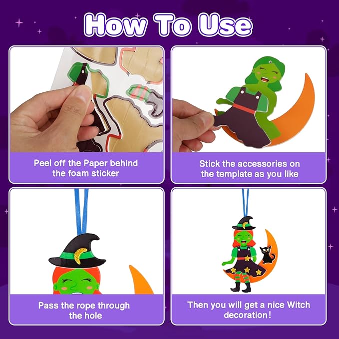 - Wide Applications:These witch crafts for toddlers are perfect for boys and girls.They can be used for Halloween crafts for kids,class rewards, school scrapbooks, craft classes, etc. It is a great halooweeb party decorations, and a good ideal Halloween Gift for Kids and Children's Day gifts, birthdays gifts.