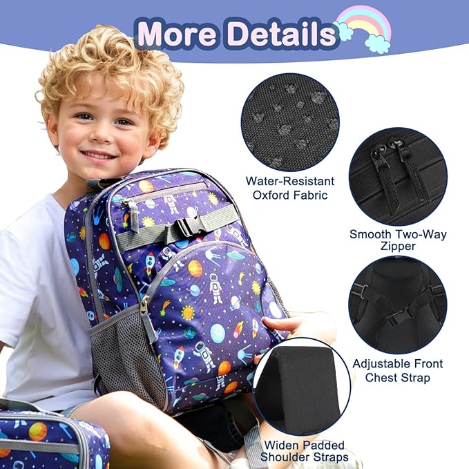 - ✿ Breathable & Adjustable Shoulder Strap: The adjustable padded shoulder straps and air mesh cushioned breathable back panel can offer support and comfort while the adjustable chest strap stabilizes the load throughout the day's activities.The shoulder straps with buckle that ensure a comfortable fit for your child's shoulders. The straps are also adjustable, allowing for easy customization to accommodate their height and size.