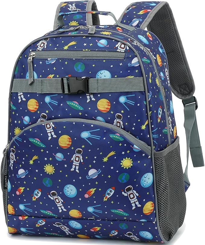 FlowFly Kids Backpack for Toddler Boys Girls, Simple Lightweight Bookbag for Daycare Kindergarten Elementary School Travel, Small Modern Bag (Medium 15'', Astronaut)