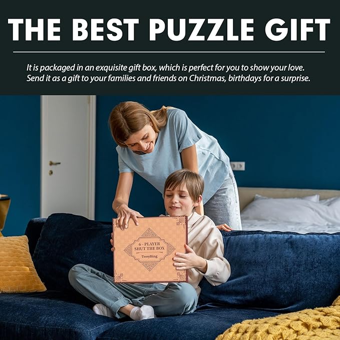 - Gift Box Packaging And Portability: This indoor Shut the Box board game table is packaged in exquisite gift boxes, which is one of the biggest highlights of the product. You can give it as a gift to your family and friends on Christmas, birthdays, New Year and anniversaries, etc. The just-sized packaging box and cute little cloth bag help you better store this dice games table, and it is also convenient for you to carry it to travel, picnics, and other occasions.