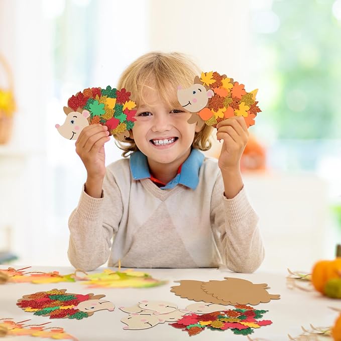 - Fall Craft Kits for Kids:The EVA foam art crafts for kids includes 12 pack of hedgehog craft sets.There 12 x foam template,12 x googly eyes,12 x colourful ribbon,192 x leaf self-adhesive accessorie,1 x instruction.A lot of foam stickers enough quantity to meet needs on a activity for kids,kids can make their own hedgehog arts crafts set!