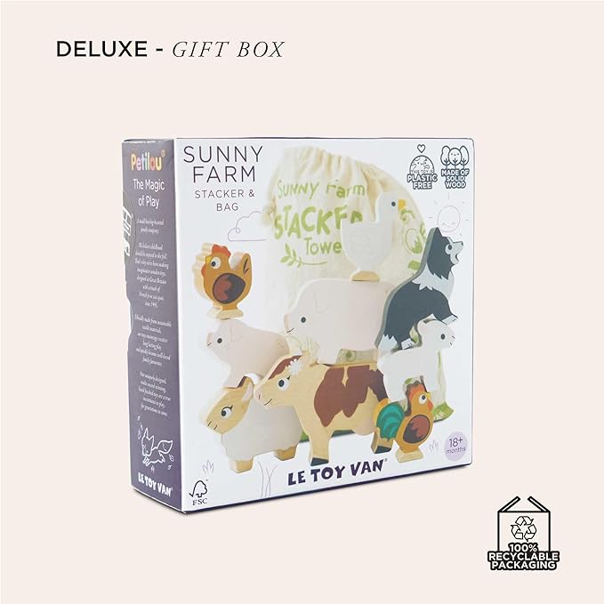 Le Toy Van Wooden Sunny Farm Stacker & Bag Educational Balancing Activity, Plastic Free, Toy Suitable for Age 18+ Months PL141