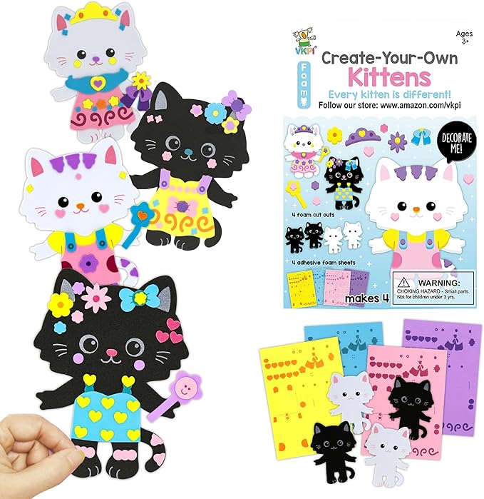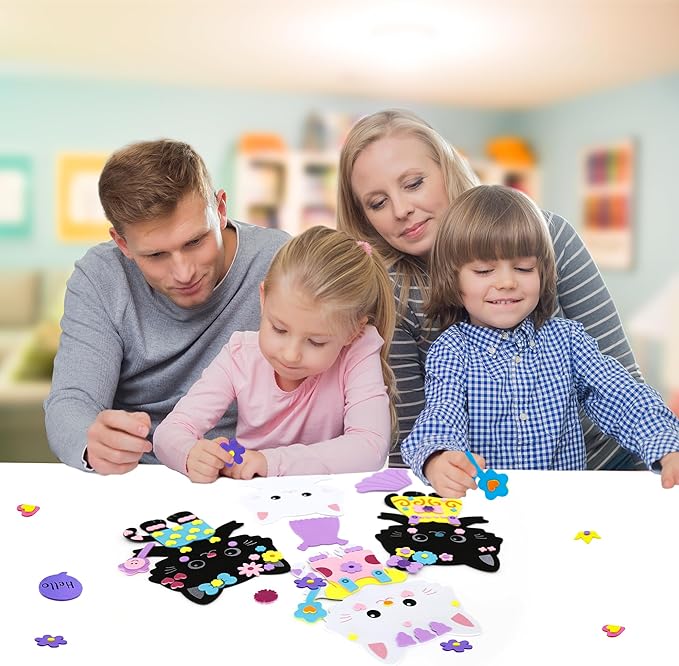- Child-friendly and Safety: These foam crafts are made of premium soft and thick EVA foam which is green-minded, child-safe, no odor. No glue, no scissor needed, children can easily tear off perfect cut pattern and then stick on unfinished kittens. Enjoy the craft time Safely!