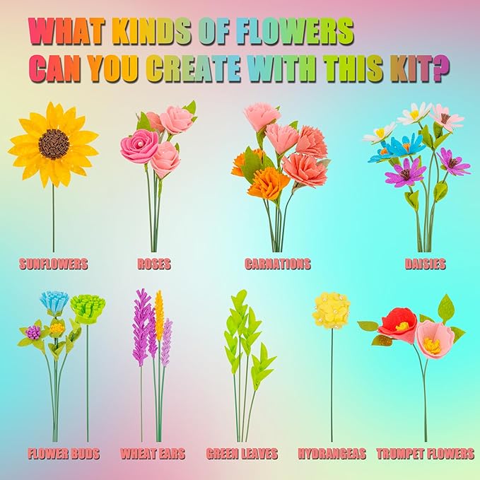 - ๐จIDEAL GIFT FOR GIRLS: The Finished Flower Bouquet Can Also Serve As a Heartfelt Gift for Special Occasions Like Mother's Day or Teacher's Day, Making This Crafts Kit An Ideal Birthday or Christmas Gift for Girls Aged 6 to 12. A Gift That Lets Them Create, Learn, and Have Fun At The Same Time.