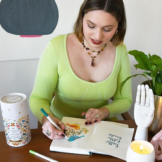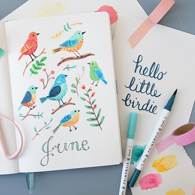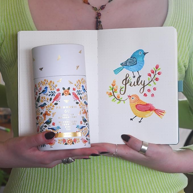 Primrosia Fauna - 60 Dual Tip Watercolor Brush and Fine Tip Pens. Marker Pens for Art Sketching Illustration Calligraphy Permanent Highlighter Bullet Journal Drawing Adult Coloring
