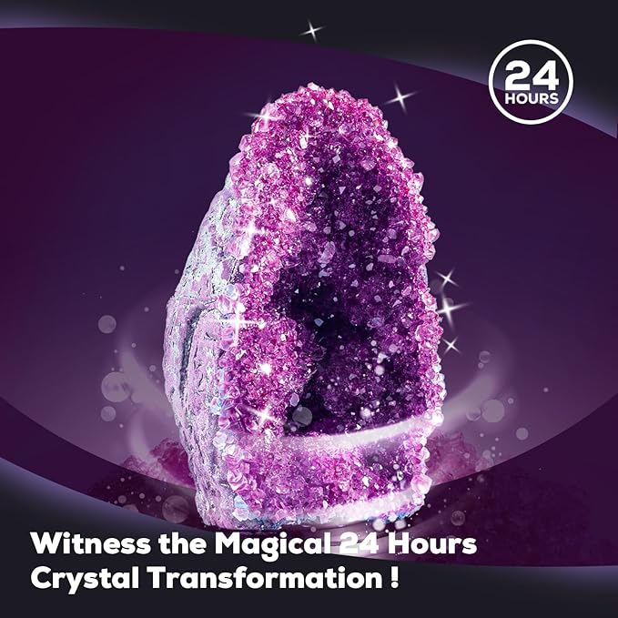 - 24Hrs Rapid Growth: The science kit for kids offers a 24Hrs journey of wonder,within a day, children will witness stones transforming into beautiful crystal clusters; It comes with guided instructions for anyone looking for how to start