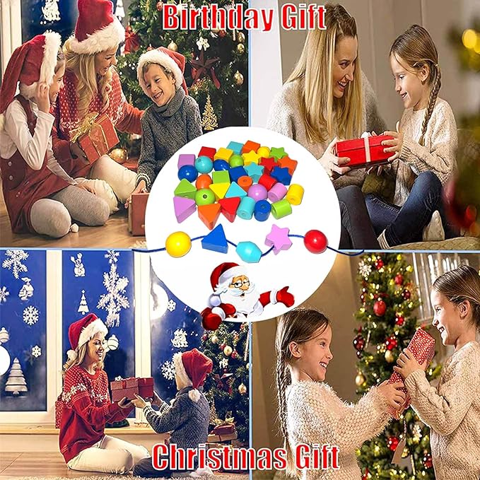 - 【Birthday Gifts for Children & Best Christmas Gifts】 This lacing toy beads set is a popular birthday gifts for toddler kids. Kids can share & play with friends, helpful to build friendship and self-confidence.Wooden string toys for 3 4 5 6 year old kid girls as Christmas gifts, Thanksgiving Day, Children's Day, other holiday gifts.