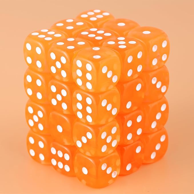 36 Pieces 12mm 6 Sided Mini Dice Set,Translucent Colors D6 Game Dice Set,6 Sided Standard Game Dice for Board Games Dice Games Classroom Teaching Dices Game, with Portable Gaming Box(Orange)