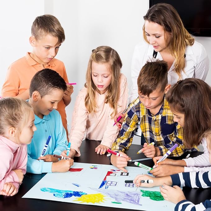 - Broad line markers with conical tips allows kids to color with the side or draw with fine line.