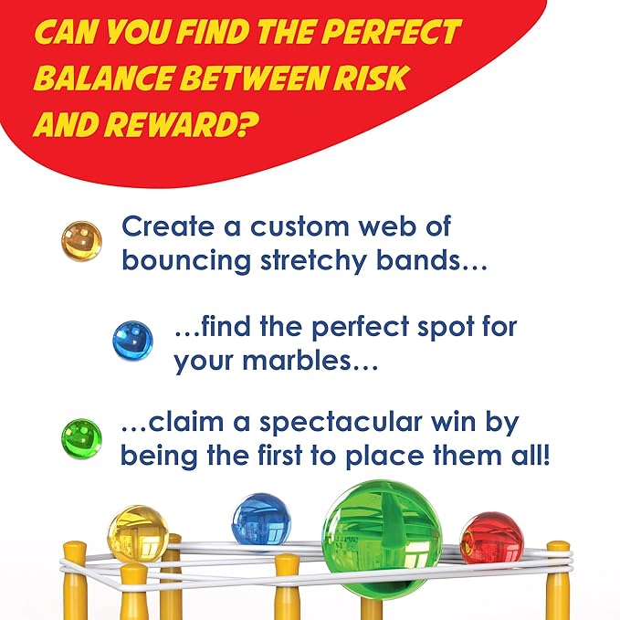 - Engaging Board Games for Kids: Players take turns placing marbles on rubber bands that sway and bounce, adding a thrilling twist as you try to add marbles without letting any fall off the bands...and right back into your pile