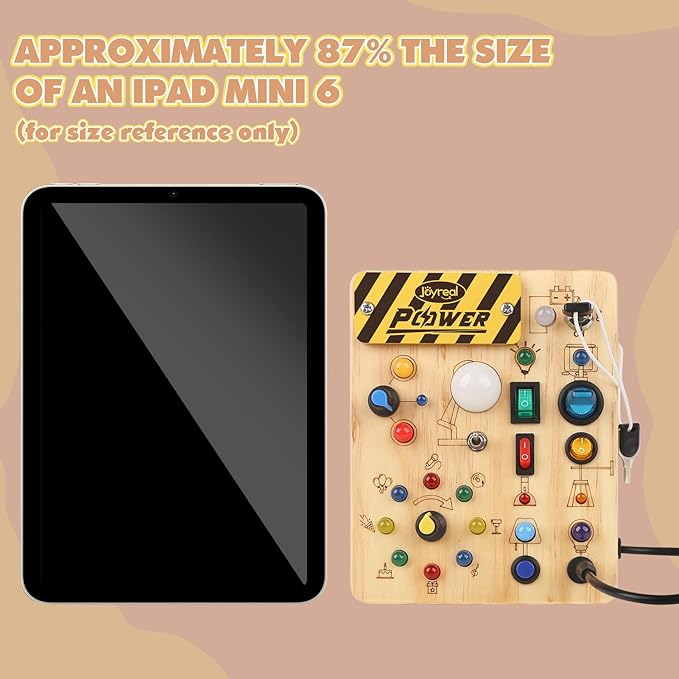Joyreal Montessori Busy Board Wooden Sensory Toys for Toddler with LED Light Up Switch, Baby Fidget Board Travel Toys for 18+ Months, Boys Girls Birthday, Medium