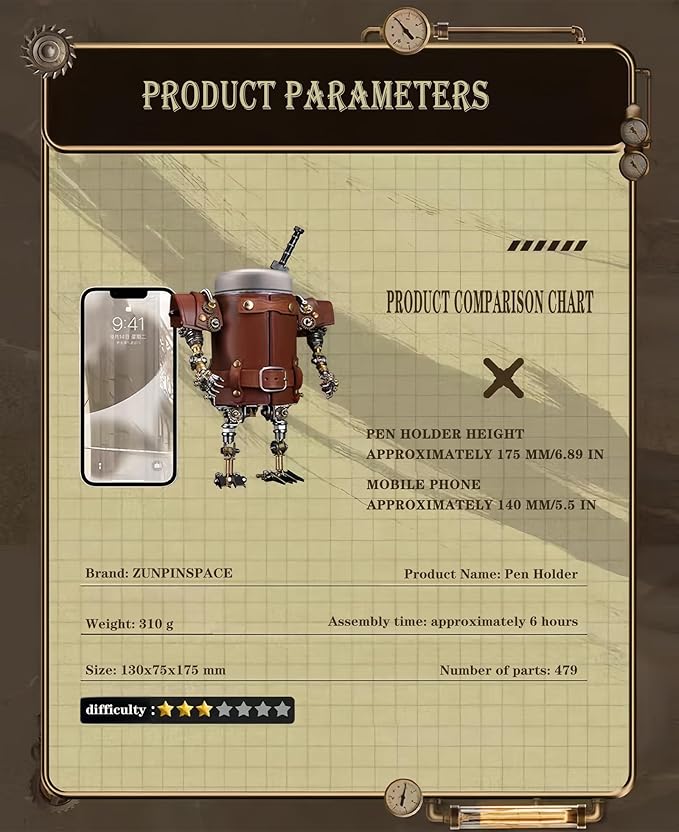 - 【Challenging 3D DIY Experience】: This "Ink Shadow Guard" metal mechanical model is composed of 479 parts, suitable for teenagers and adults aged 16 and above. Creating a set of metal models is very challenging, which may take over 4-6 hours, depending on your observation and patience. After hours of focused work and completing your own amazing craftsmanship, you will experience a strong sense of achievement and stress relief.