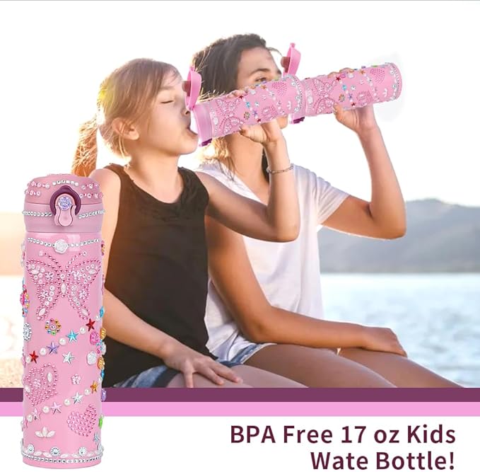 Gifts for Girls, Decorate Your Own Water Bottle for Girls with Gem Stickers, Girls Fun DIY Arts and Crafts Kit for Children Ages 4-6-8-12, Birthday Gifts for Teen Graduation Back to School Gift Ideas
