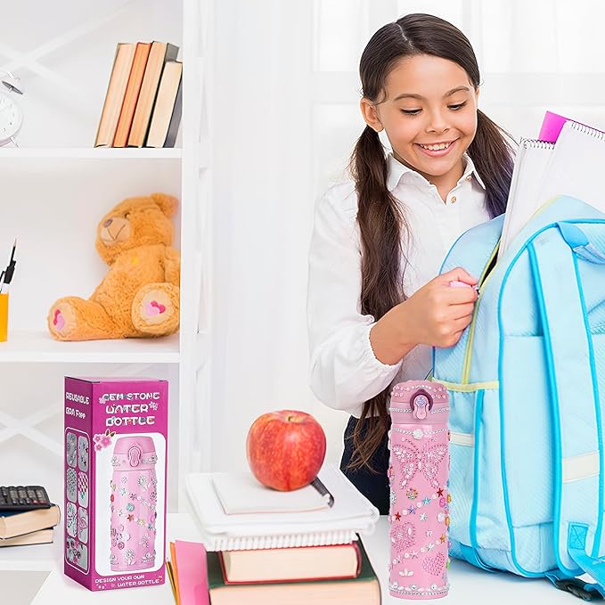 - SURPRISE PACK! Gift Ready Packaging comes with a pink water bottle, 7 sheets of Rhinestone Stickers with hundreds of Glitter Gems to create your unique water bottle. You'll be proud to give this as a present! Awesome as Christmas stocking stuffers, Valentines Day Gifts, Easter basket stuffers, birthday gifts, and more!