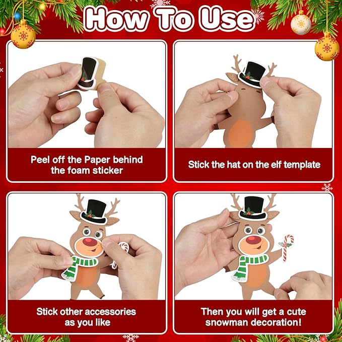 - Chirstmas Craft Kit for kids:The EVA foam reindeer craft for kids includes 12 pack of reindeer craft sets,uch as Christmas hat, scarf, christmas bell, gift box, etc,and have a lot of foam stickers enough quantity to meet needs on a activity for kids,kids can make their own Chirstmas arts crafts set to decorate Christmas tree and create a Christmas atmosphere!
